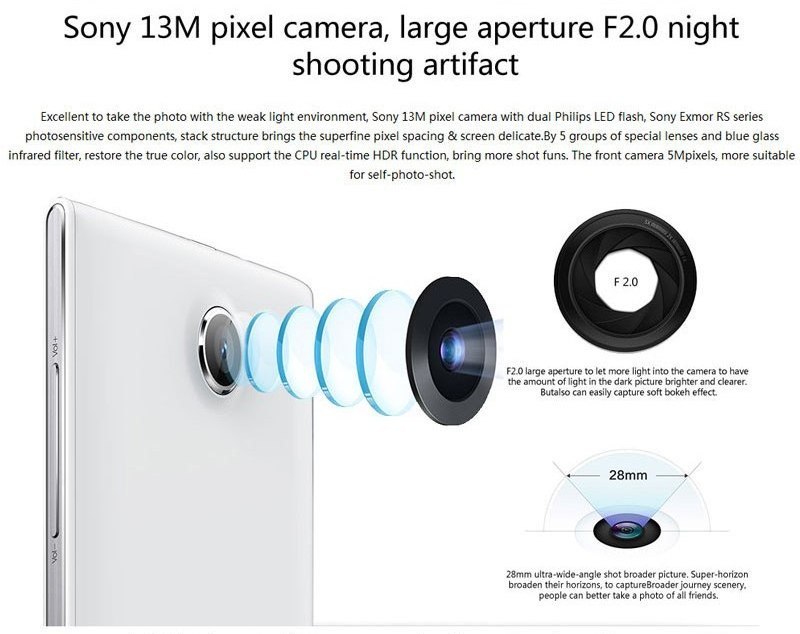 Il V3 monta una delle migliori fotocamera attualmente utilizzate dai telefoni presenti sul mercato. In effetti, la fotocamera principale sul V3 è meglio di quelle che si trovano su molti dispositivi “di punta”! La scelta di iNew è infatti ricaduta su un sensore Sony Exmor RS. Il sensore da 13 megapixel è dotato inoltre di una grande apertura F/2.0, 28 millimetri grandangolare, filtro IR e un LED Philips per le fotografie in “notturna”.
