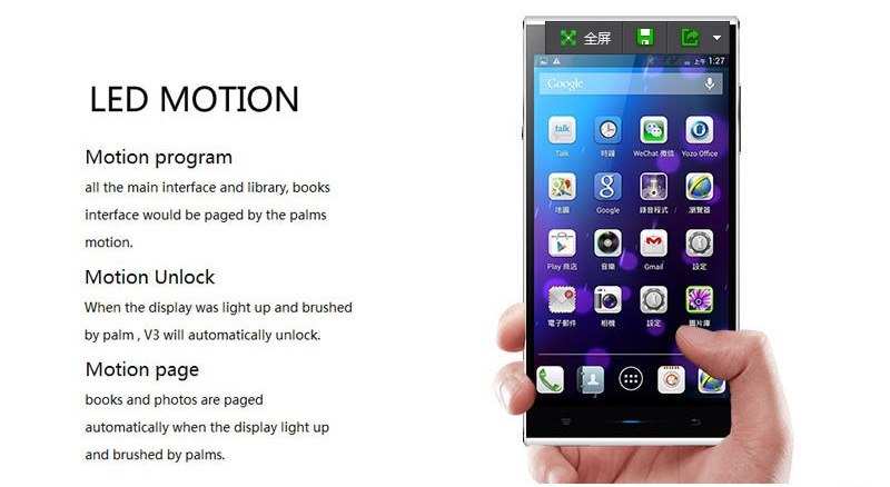 Mentre la maggior parte dei produttori di telefoni cinesi in questo momento utilizza display FULLHD, iNew ha utilizzato un pannello con risoluzione inferiore per ridurre il prezzo complessivo del telefono, preferendo aggiungere caratteristiche interessanti come il touch ultra-sensitve che ne consente l’utilizzo con le dita bagnate o con i guanti.